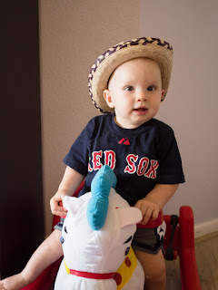 He is a red sox fan as you can see by his t-shirt and loves Yo Gabba Gabba. Super cute.