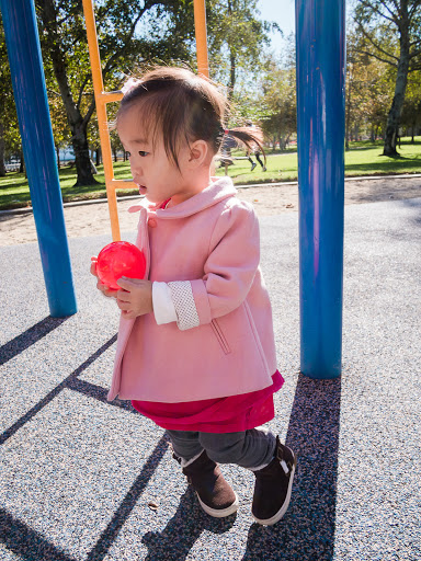 It was a nice autumn day. FINALLY get to break out her fall coat! |