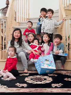 So I've blogged about asian husband's cousins getting together for Christmas for two Christmas' so far. This will be number 3. Just to recap, all of hubby's cousins have children and they are all basically under the age of 10 with the youngest baby Zoe being 15 months, so it's fun. I've documented the kid's "Christmas Photo" attempts every year, and this year was the most successful yet! (I mean..yeah..duh..the kids are older so they are better at taking pictures..but still!)